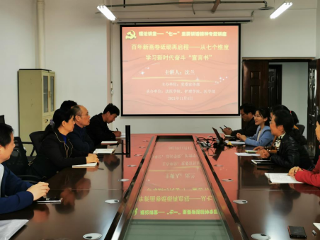11月04日,医学部与护理学院、法医学院联合在医科4号楼403举办理论讲堂,特邀校党委宣传部副部长沈兰老师作题为《百年新画卷 砥砺再启程——从七个维度学习新时代奋斗“宣言书”》讲座,教职工代表30余人到场聆听,法医学院书记贾林红主持会议。