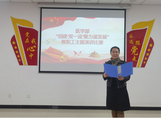 医学部专职副主任席守民点评,选手们紧扣演讲主题,立足本职工作,把专业知识、专业能力、专业作风、专业精神统一起来,用真挚的情感、鲜活的案例,弘扬了主旋律,激发了进取心。
