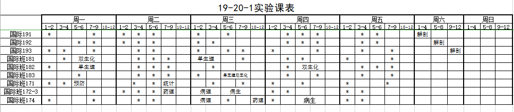 【实践教学】19-20-1实验课表