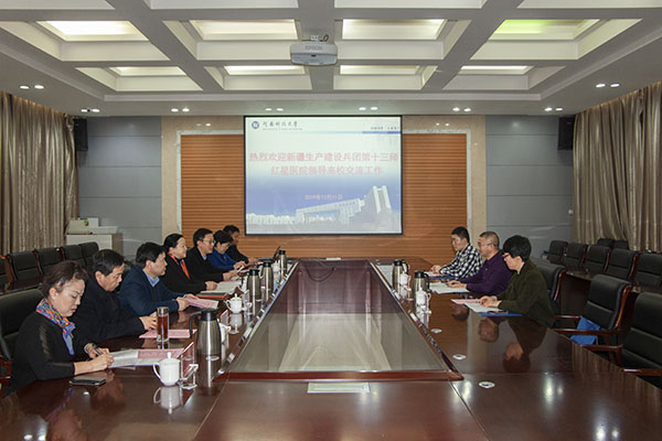 雷方代表学校向安占天一行的到来表示热烈的欢迎,简要介绍了河南科技大学、医学部及第一附属医院的基本情况,并表示,河南科技大学及医学部会全力支持红星医院的建设与发展,将根据红星医院提出的具体援疆要求和计划,全面推进落实好援疆工作。