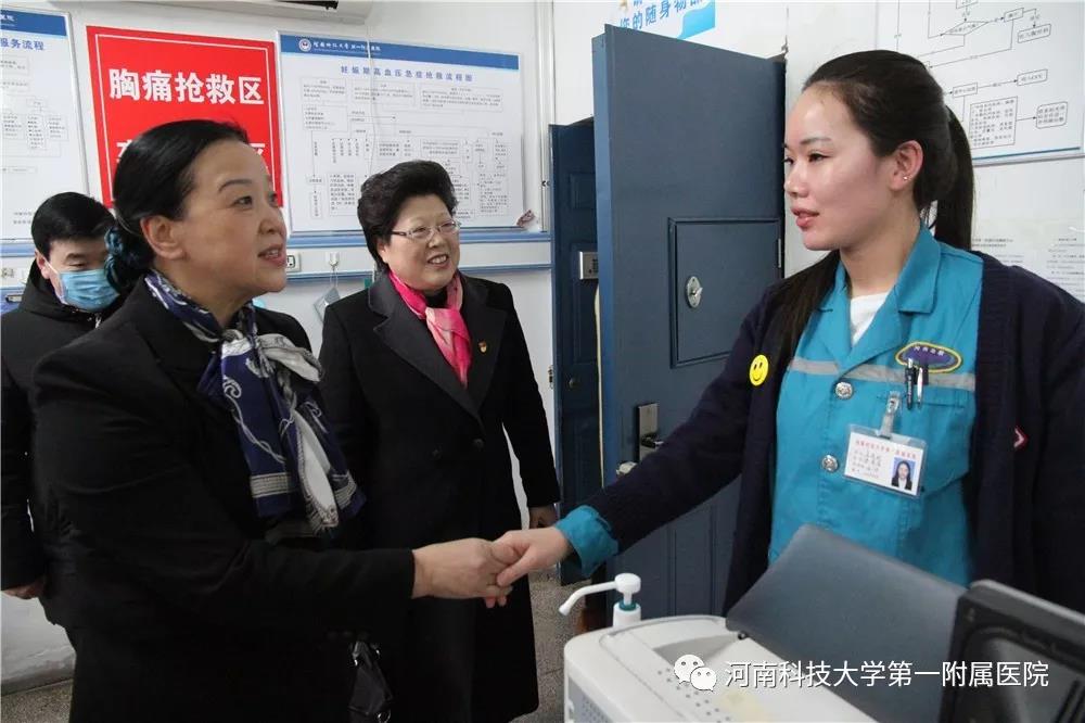 1月20日上午,河南科技大学副校长、医学部党委书记兼主任雷方,医学部党委副书记贺志勇、副主任高社干、副主任王宏运、副主任董平栓,在一附院院领导王瑞丽、杨建学、李群等的陪同下,慰问了从北京医学院支援河南科技大学第一附属医院建设的口腔科专家、全国卫生系统先进工作者刘俊,从武汉协和医学院支援河南科技大学第一附属医院的消化内科开创者和奠基人曾宪文,并到岗位上慰问了来自武汉同济医学院现92岁高龄仍坚持在感染科专家门诊坐诊的黄寿吾老先生。