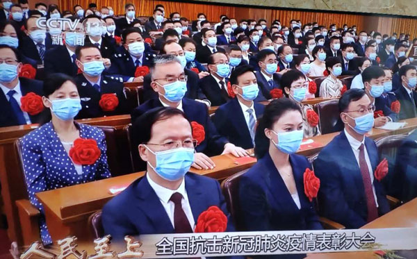 9月8日上午10时,全国抗击新冠肺炎疫情表彰大会在北京人民大会堂隆重举行。中共中央总书记、国家主席、中央军委主席习近平向国家勋章和国家荣誉称号获得者颁授勋章奖章并发表重要讲话。大会还对全国抗击新冠肺炎疫情先进个人、先进集体,全国优秀共产党员、全国先进基层党组织进行表彰。我校第一附属医院原常务副书记、副院长毛毅敏荣获“全国抗击新冠肺炎疫情先进个人”,并接受表彰。