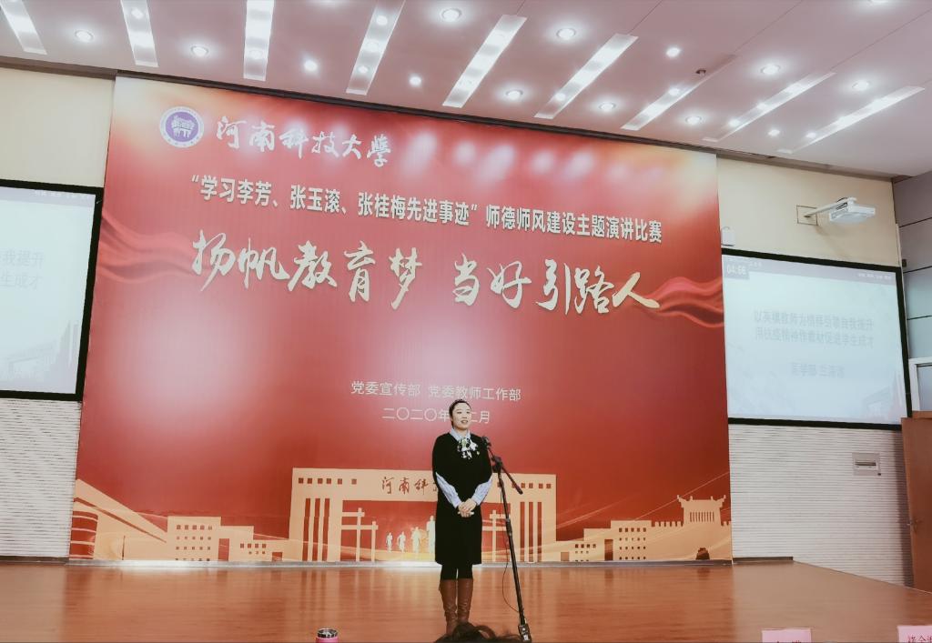 为深入学习贯彻习近平新时代中国特色社会主义思想,持续学习习近平总书记关于教师队伍建设系列重要讲话精神,大力弘扬高尚师德师风,更好地发挥先进典型的示范带动引领作用,12月3日下午,我校在公教3区学术报告厅成功举办“学习李芳、张玉滚、张桂梅同志先进事迹”师德师风建设主题演讲比赛决赛。校党委副书记褚金海、校党委副书记李漪出席比赛,各职能部门、各学院主要负责同志和师生代表一起观看了比赛。