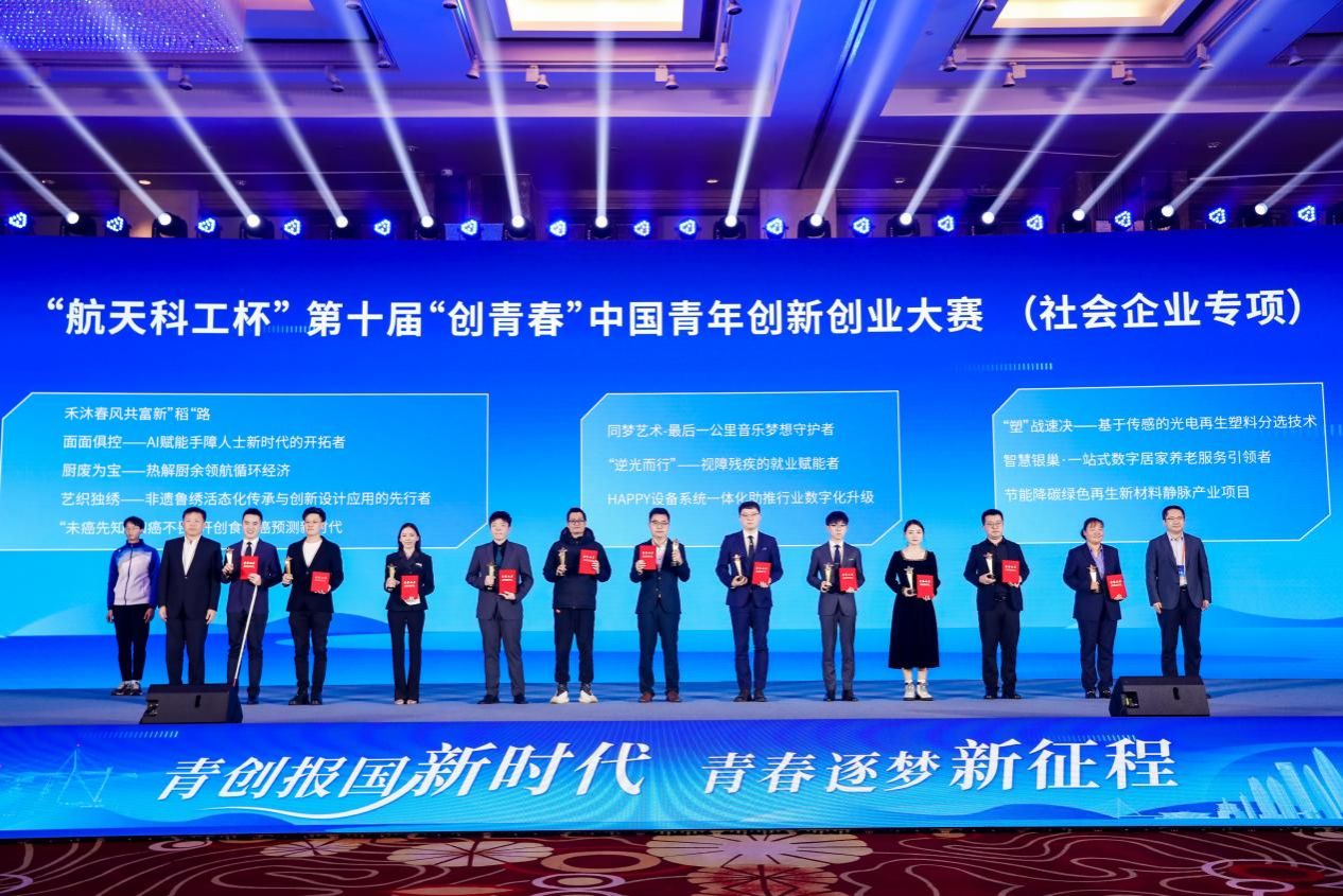 校新闻中心讯 11月29日,由共青团中央、人力资源和社会保障部、农业农村部、商务部、国家卫生健康委员会、国家税务总局联合浙江省人民政府主办的第十届“创青春”中国青年创新创业大赛(社会企业专项)在宁波圆满收官。我校荣获国家级金奖。