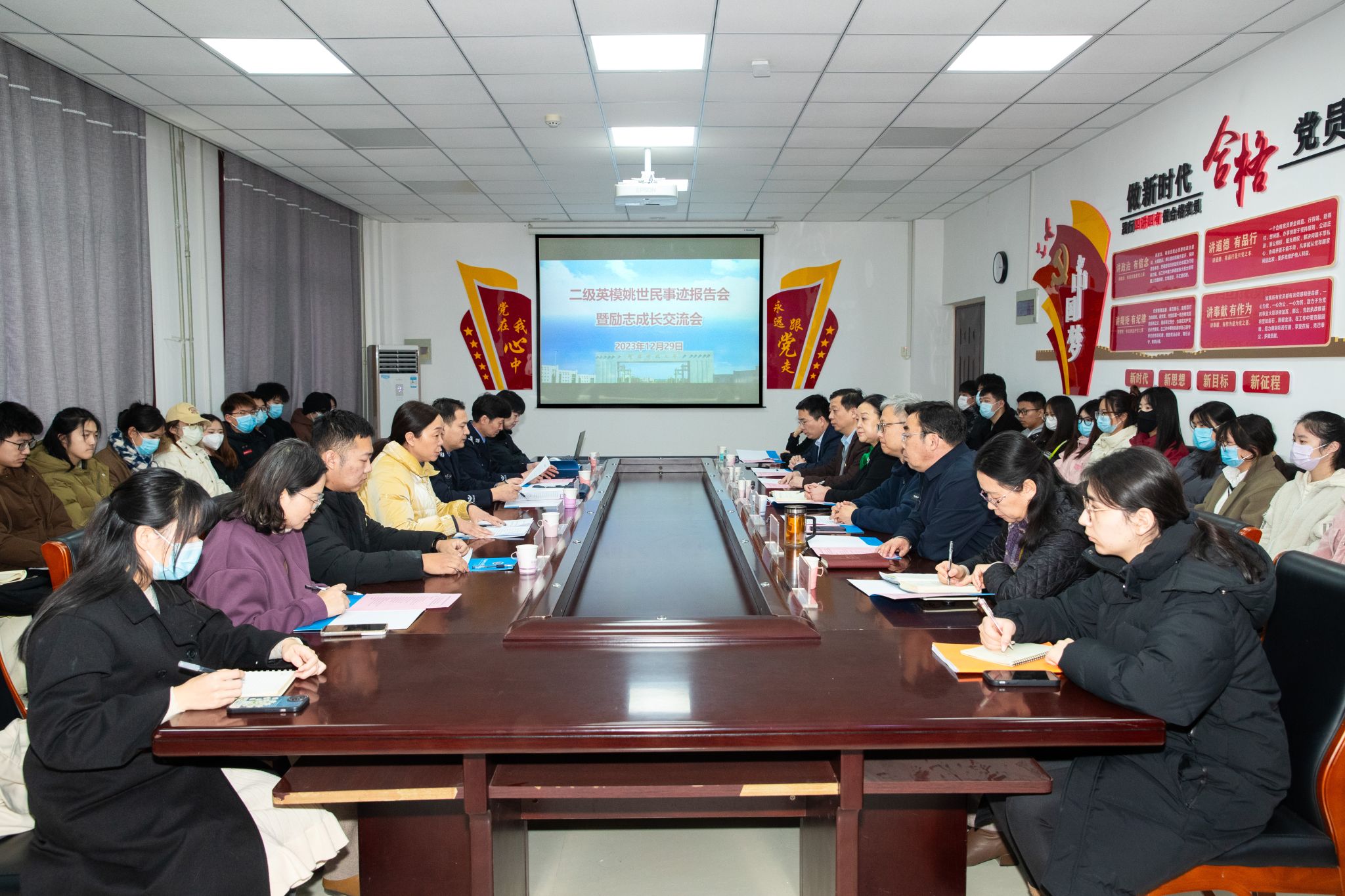 校新闻中心讯 12月29日,学习二级英模姚世民事迹报告会暨励志成长交流会在医科1号楼302会议室举行。全国公安系统二级英雄模范、河南省中原卫士姚世民同志的家属李玉会,洛阳市公安局组教处处长李辉,伊川县公安局党委委员卜社彬,医学部主任雷方,以及医学部、基础医学与法医学院师生代表参加会议。